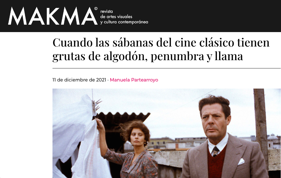 «Cuando las sábanas del cine clásico tienen grutas de algodón, penumbra y llama«. Artículo sobre el erotismo de las sábanas en el cine. Revista Makma (2021).