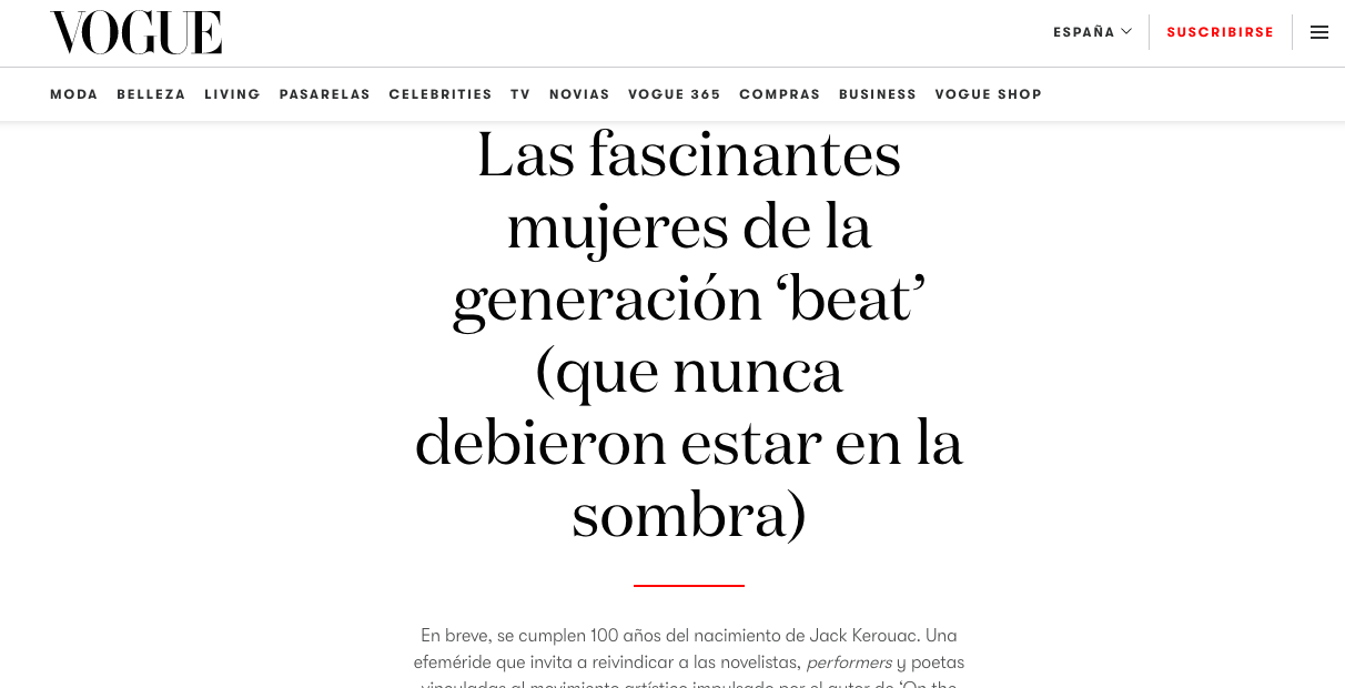 «Las fascinantes mujeres de la generación ‘beat’ (que nunca debieron estar en la sombra)«. Reflexión acerca de lo mejor de la generación beat a propósito del centenario de Jack Kerouac. Vogue, 2022.