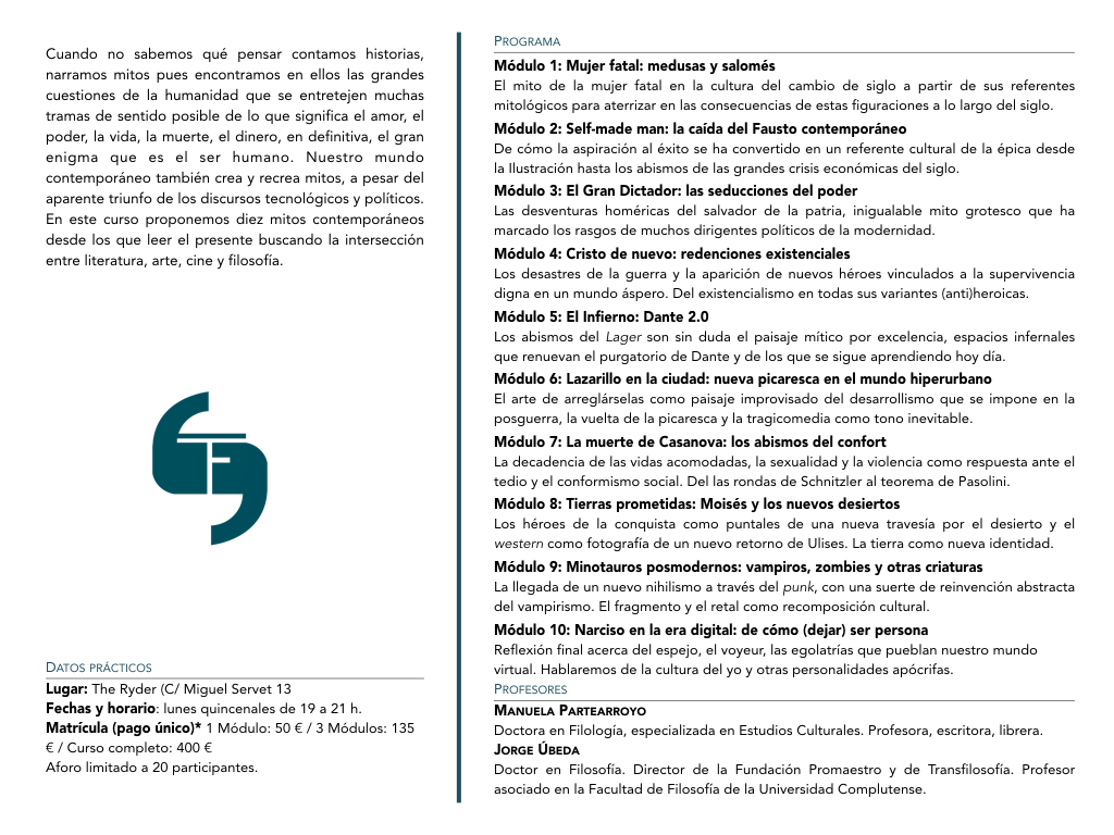 - Taller «Mitologías contemporáneas: leer el presente» (2020)