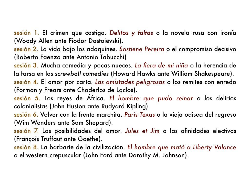 - Precio: 15 euros / sesión. INSCRIPCIONES AQUÍ:https://libreriataigamadrid.es/literacine/