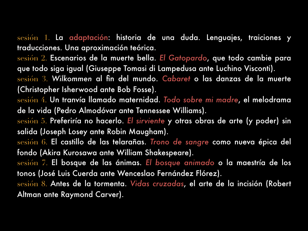 - Taller «Matrimonios a la italiana. Cineastas españoles e italianos: amistades y obras» (abril 2021).