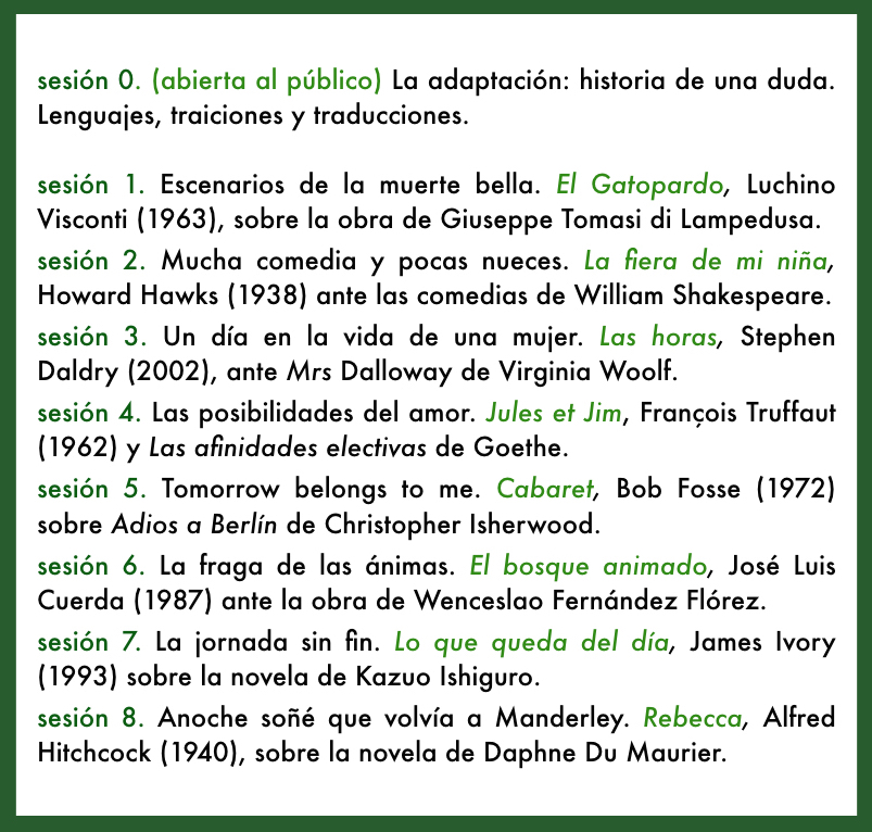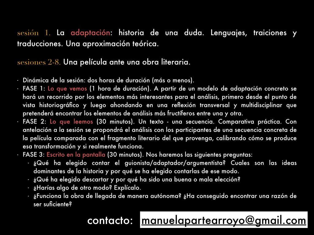 - Taller «literacine» (ciclo 2026). ACTUALMENTE EN CURSO